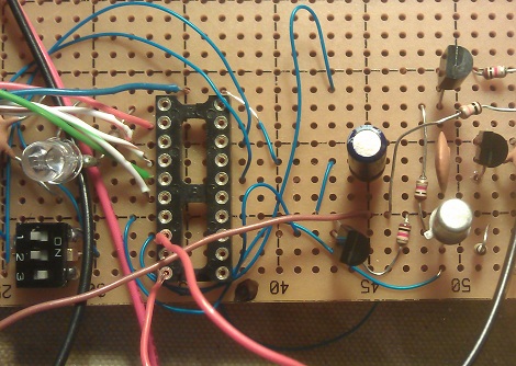 For the 12V power adjustment (only a 9V battery is needed) please check the page of Dick Cappel, you only will have to do that once. NOTE that in steps 3 and 8, you must bridge pins 18 and 20, NOT pins 11 and 20 (because we are using an different pin-layout).